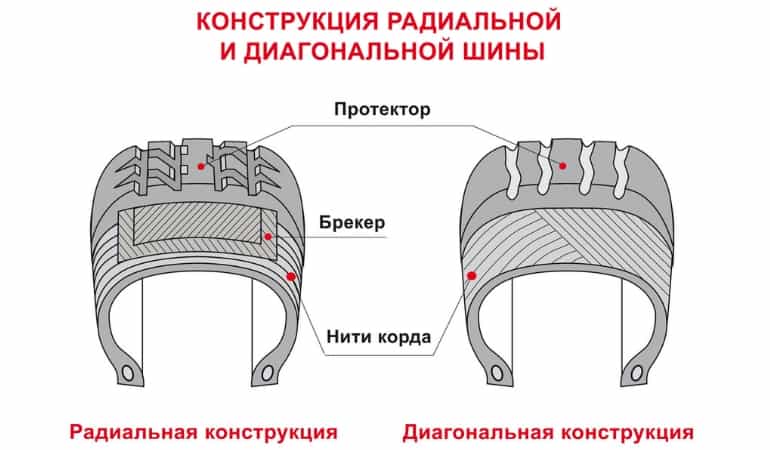 Конструктив современной покрышки – довольно сложная система, внутри которой присутствует два вида каркаса прочности: