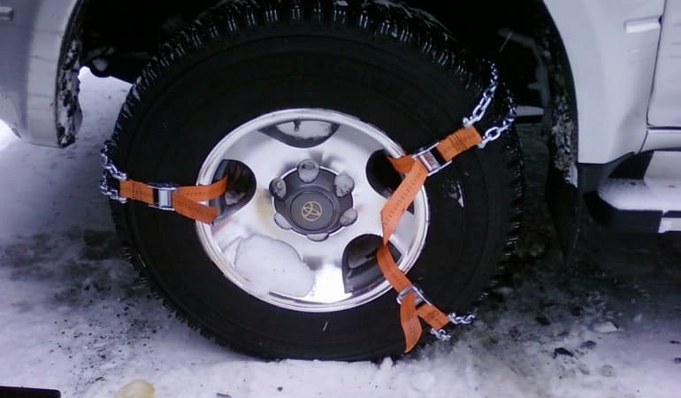 Главное достоинство таких устройств заключается в том, что их возможно применить в случае острой необходимости. Например, вы поехали на рыбалку. Сначала двигались по асфальтированной дороге, а затем съехали на проселок. Тут возникло неожиданное препятствие – дорогу размыло дождем. В этом случае просто достаньте цепи противоскольжения и пристегните их на колеса. Теперь можно ехать.