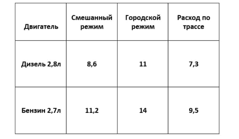 - дизельный 2,8-литровый двигатель мощностью 177 л.с. с максимальным крутящим моментом 450 Нм и объем топливного бака 80 литров;