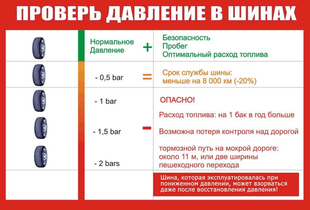Сниженное на 2 бар давление в шинах увеличивает тормозной путь в 1,5 раза.