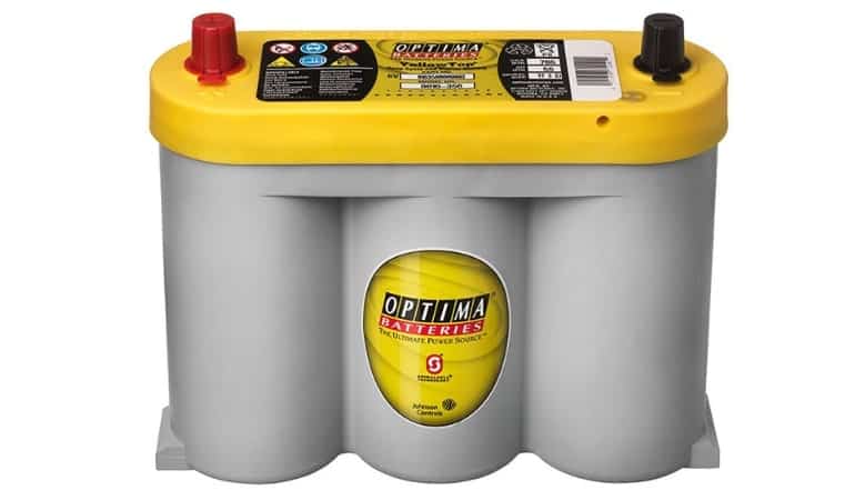 - Optima Yellow Top 55Ач – гелевый аккумулятор американского производства. Стартовый ток – 765А. Отличается малым весом и небольшими габаритами. Имеет длительный период хранения без потери работоспособности и большой срок службы. Выдерживает сильные перегрузки, устойчив к вибрации. Из недостатков можно отметить высокую цену – от 18000р и сбои в работе при критически низких температурах.