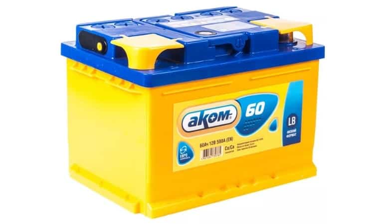 - Akom Standart 6CT-60.0 LA – ещё одна российская модель. В конструкции используется свинец сплавленный с кальцием, что значительно продлевает срок службы. Корпус герметичный, ударопрочный, вибростойкий. Аккумулятор не чувствителен к перепадам напряжения, а вот неполный заряд может негативно отразиться на его работоспособности. Цена – от 4100р.