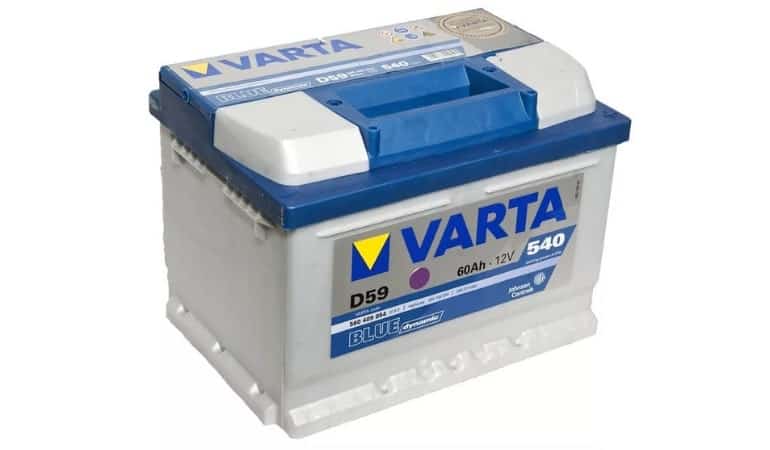 - Varta Blue Dinamic D59 – немецкое качество по праву занимает первое место. Отличается рекордной долговечностью и надежностью даже в тяжелых эксплуатационных условиях. Имеет пусковой ток в 540 А при номинальной емкости 60Ач. Отличается высоким значением резервной мощности. 99% отзывов покупателей на аккумулятор положительные. Из недостатков можно отметить, разве что достаточно высокую стоимость в 5000 руб. Серия Blue Dinamic подходит лучше для автомобилей с моторами средней мощности.