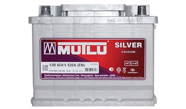 - Mutlu Calcium Silver 60 – кальциевая модель с емкостью в 60 ампер-часов и током – 540А. Из преимуществ модели – отличное соотношение цены и качества, хорошая масса свинца, доступ к емкостям с электролитом. К недостаткам можно отнести резервную мощность меньше, чем у предыдущей Varta, при примерно равной стоимости моделей в 5000 р.
