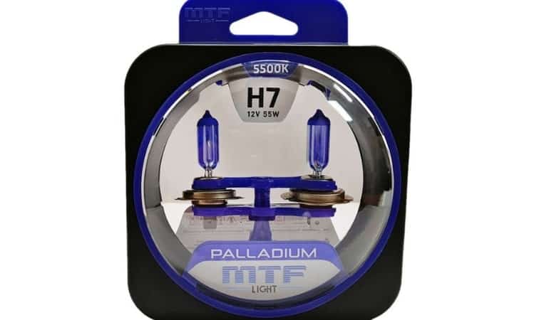 - MTF Light Palladium – модель с кристально-голубым оттенком, 5500К. Отличается двухслойным покрытием и особым стеклом, поглощающим большую часть ультрафиолета. Абсолютно безопасны для пластика фар, однако могут ослеплять встречных автомобилистов. Наиболее бюджетный вариант с ксеноновым эффектом. Комплект из 2 штук можно приобрести за 850 рублей.