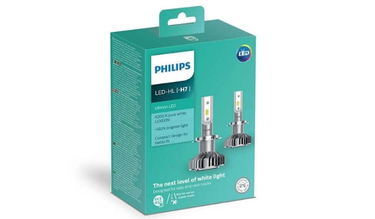 - Philips X-Treme Ultinon – одни из лучших светодиодных ламп, мощностью 14Вт. Излучают яркий свет с температурой в 6200 К, увеличивают яркость на 160%, обеспечивая превосходную видимость даже в туман и пасмурную погоду. Имеют встроенный в корпус электронный блок управления, что значительно упрощает установку. Подходят для фар с отражателем и не рекомендуются вариантов с проектором. Безусловно минусом является высокая стоимость – приобрести образец можно по цене от 3000р за штуку.
