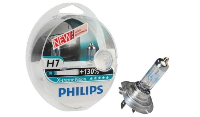 - Philips X-Treme Vision +130% – наиболее яркая модель ламп на сегодня. Излучает максимально мощный белый световой поток (+ 130% яркости) с температурой в 3700К. К преимуществам модели можно отнести качественную сборку, надежность и высокий срок работы в 450 часов. Единственным недостатком является высокая стоимость около 1200 р.