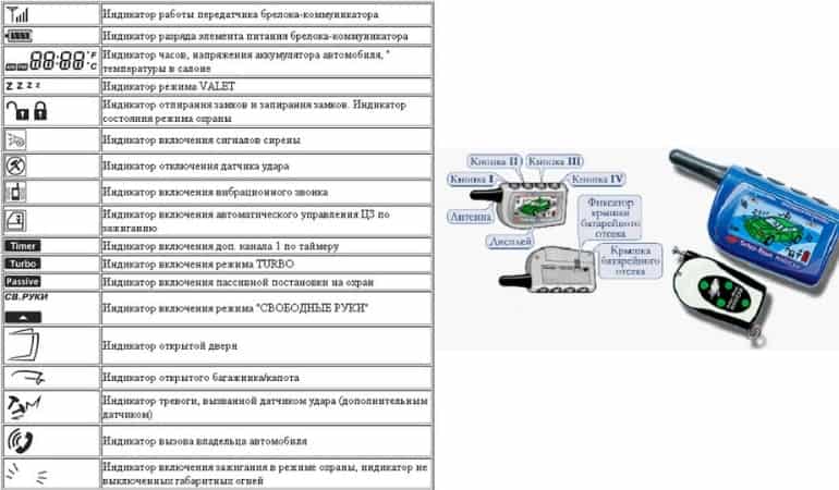 - Значение клавиш брелока и пиктограмм