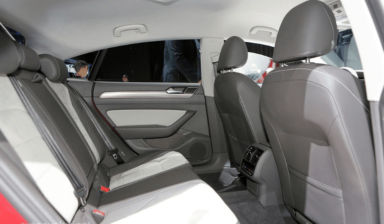 Сзади машина во многом напоминает пассат. Она получила зауженные фары, багажник со спойлером, украшенный хромированным название модели и эмблемой (которая является кнопкой для открытия багажника). А также узкие выхлопные трубы, с хромированной отделкой.
