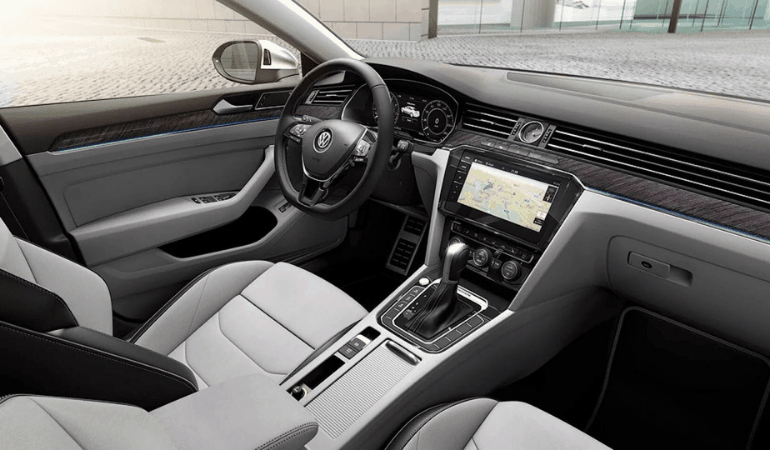 Можно отметить приборную панель с четким 9,2 дюймовым дисплеем, фирменный руль фольксваген, а также раздельный трех-зонный климат-контроль.