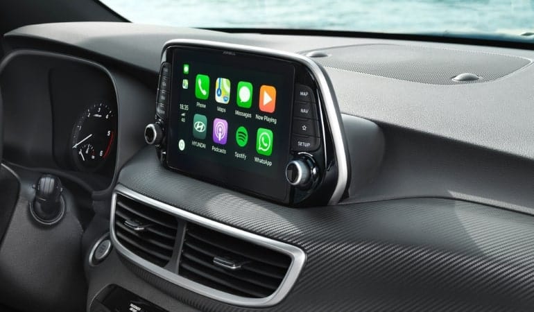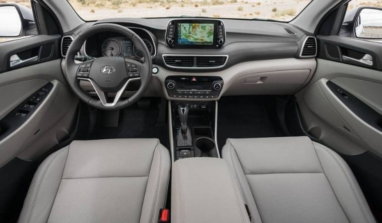 В салоне Хендай Туссан также много новшеств. Дизайнеры Hyundai Tucson старались следовать модным веяниям, разместили дисплей бортового компьютера над панелью. Размер дисплея варьируется от 5 дюймов (монохром) для базовой комплектации, 7 дюймов в версиях подороже и 8 дюймов для топовой модификации. За коробкой передач располагается отсек для беспроводной зарядки. Задним пассажирам придется довольствоваться разъемом USB.